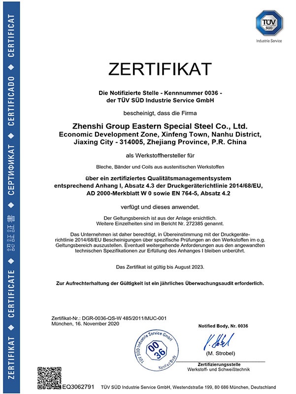 Eastern Special Steel owns CONSTEEL electric furnace, AOD furnace, refining furnace, continuous slab caster, 1800 furnace coiling mill and medium plate finishing equipment imported from Italy, continuous backwashing production and flattening unit. Advanced technology and technical equipment have laid a solid foundation for energy saving, emission reduction, low consumption, safety and high-quality production. The company is committed to research and insists on providing users with "high, refined and rare" stainless steel sheets, including duplex stainless steel, super duplex stainless steel, super austenitic stainless steel and heat-resistant austenitic stainless steel.