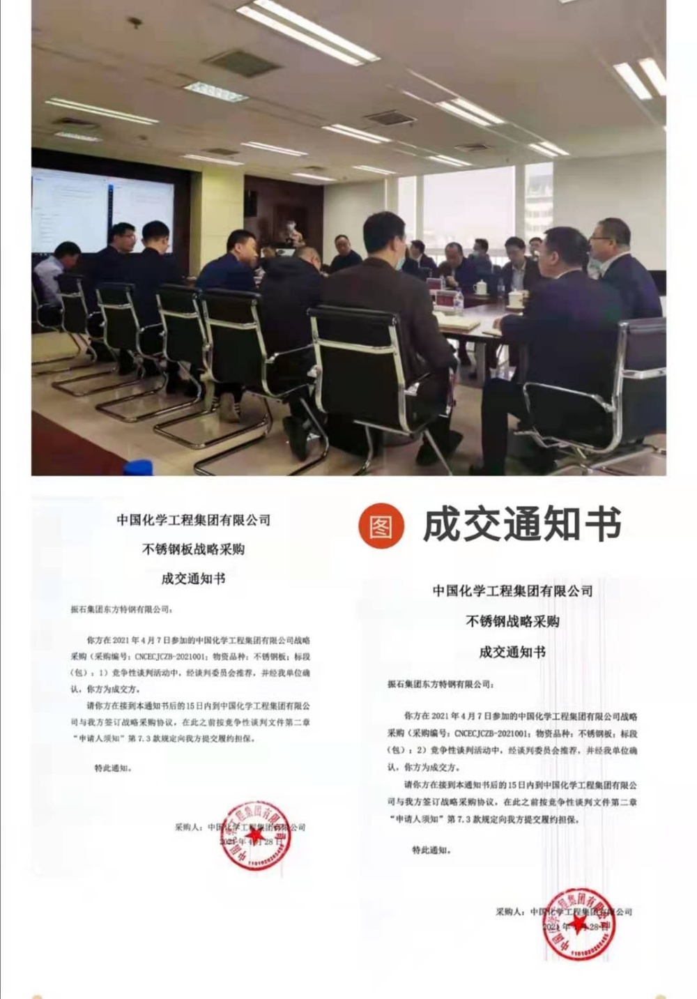 On April 28, Zhenshi Group Eastern Special Steel Co., Ltd. (hereinafter referred to as "Eastern Special Steel") successfully entered the China Chemical Engineering Strategic Procurement Qualified Supplier System, and is the only private stainless steel production enterprise shortlisted.