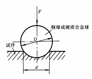 用直徑D的硬質(zhì)合金球作壓頭,以相應的試驗力F壓入試件表面,經(jīng)規(guī)定的保持時間后,卸除試驗力,得到一直徑為d的壓痕。用試驗力除以壓痕表面積,所得值即為布氏硬度值,符號用HBW表示。